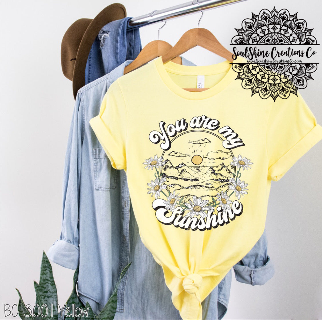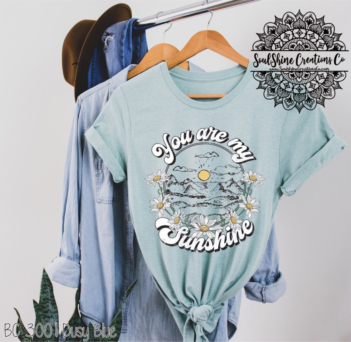 You are my Sunshine shirt- (Color of shirt in photo is Sunset,Yellow, & Dusty Blue for reference)