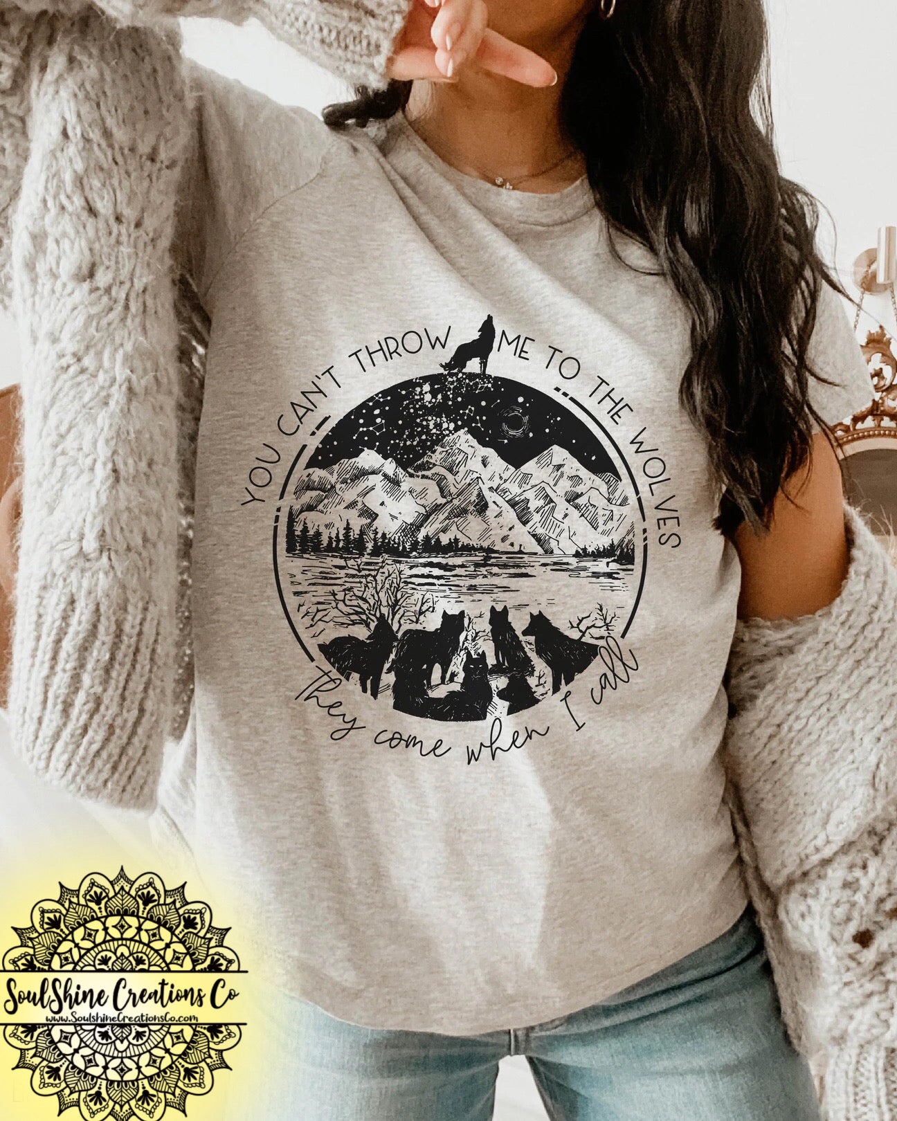You can’t throw me to the wolves they come when I call shirt- (Color of shirt in photo is Ash, for reference)